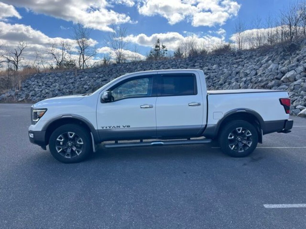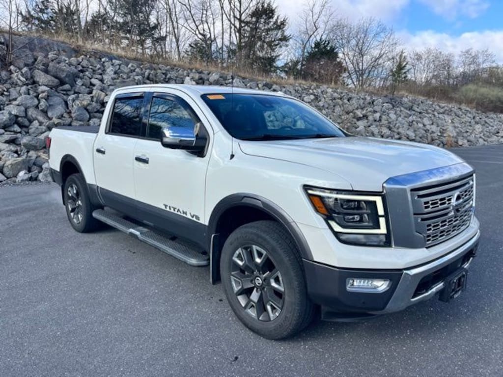 *NISSAN CERTIFIED*, *BACKUP CAMERA*, *BLUETOOTH*, *HEATED LEATHER SEATS*, *NAVIGATION*, *ONE OWNER*, *RECENT TRADE IN*, *SIRIUS XM*, *MOONROOF*, *APPLE CARPLAY/ANDROID AUTO*, *LANE DEPARTURE WARNING*, *SIDE BLIND ZONE ALERT/BLIND SPOT*, COOLED LEATHER FRONT SEATS, HEATED LEATHER REAR SEATS, Titan Platinum Reserve, 4D Crew Cab, 5.6L V8 DOHC 32V LEV3-ULEV70 400hp, 9-Speed Automatic, 4WD, Pearl White Metallic, Black/Brown Leather, 5.5' TITAN Box, Platinum Reserve Utility Bed Package, Platinum Utility Package, Protection Package 2, Rear Bumper Step, Rear Utility Bed Step, TITAN Box.
